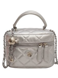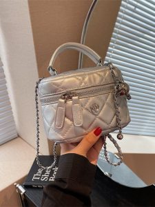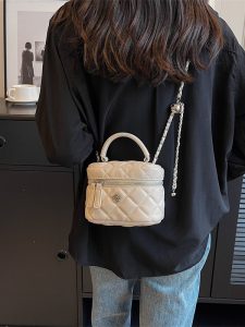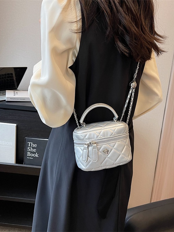 Fashionable small fragrance box bag for women, new niche trendy rhombus chain bag, high-end simple crossbody bag Material: PU Trendy luggage styles: box bags Bag size: small Popular elements: rhombus, chain Lining texture: polyester Luggage shape: box type Opening method: zipper Hardness: medium to hard Outer bag type: none Size: 16CM*9CM*12CM