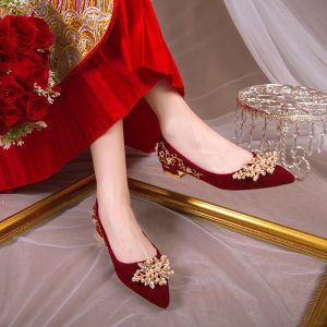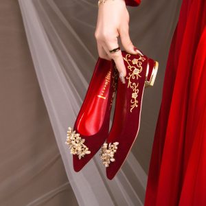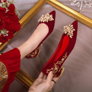 Wedding shoes spring women’s red Xiuhe suit bridal shoes new niche high-end toasting thick heels flat shoes Popular elements: buckle Toe shape: pointed Upper material: suede Style: leisure Applicable gender: Female Heel height: low heel (1-3CM) Pattern: solid color Suitable season: spring