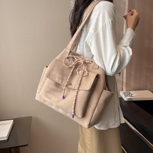 Large-capacity cross-border bag women’s trendy commuter shoulder bag fashionable solid color drawstring bag versatile ins handbag