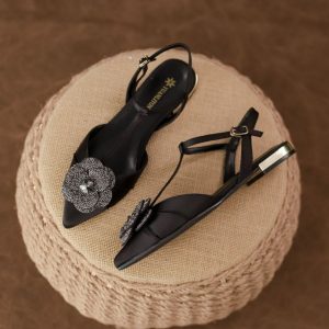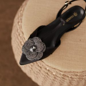 Camellia sandals with skirt, women’s new French sandals, women’s outerwear, high-end, elegant, toe-cap women’s shoes